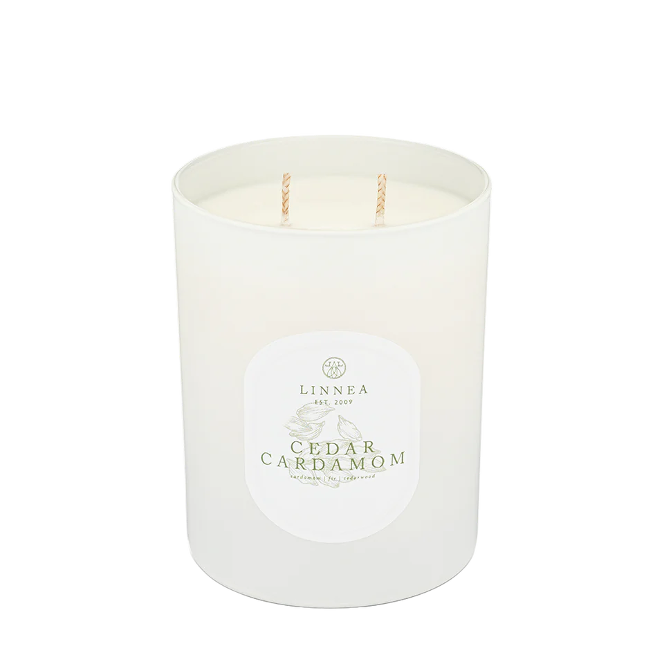 Cardamom, fir, and cedarwood blend into a warm, spiced symphony—comforting as a kitchen filled with the scent of baked goods. As it burns, Cedar Cardamom wraps your space in the familiar embrace of fall, glowing from our signature white glass vessel with a double wick for a clean, radiant finish.