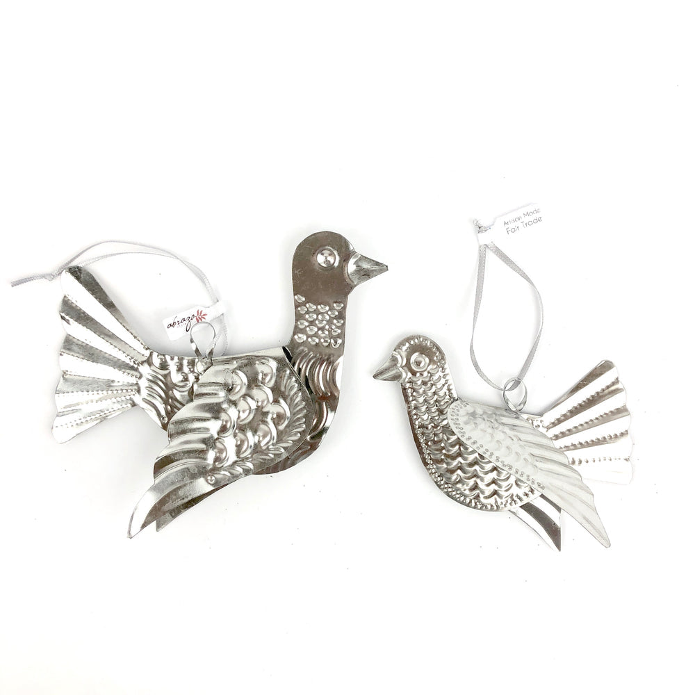 These 3 dimensional, hand cut, embossed tin doves are made by master artisans of Oaxaca, Mexico. Featuring collapsible wings. Fair trade verified. (Wings ship folded)
